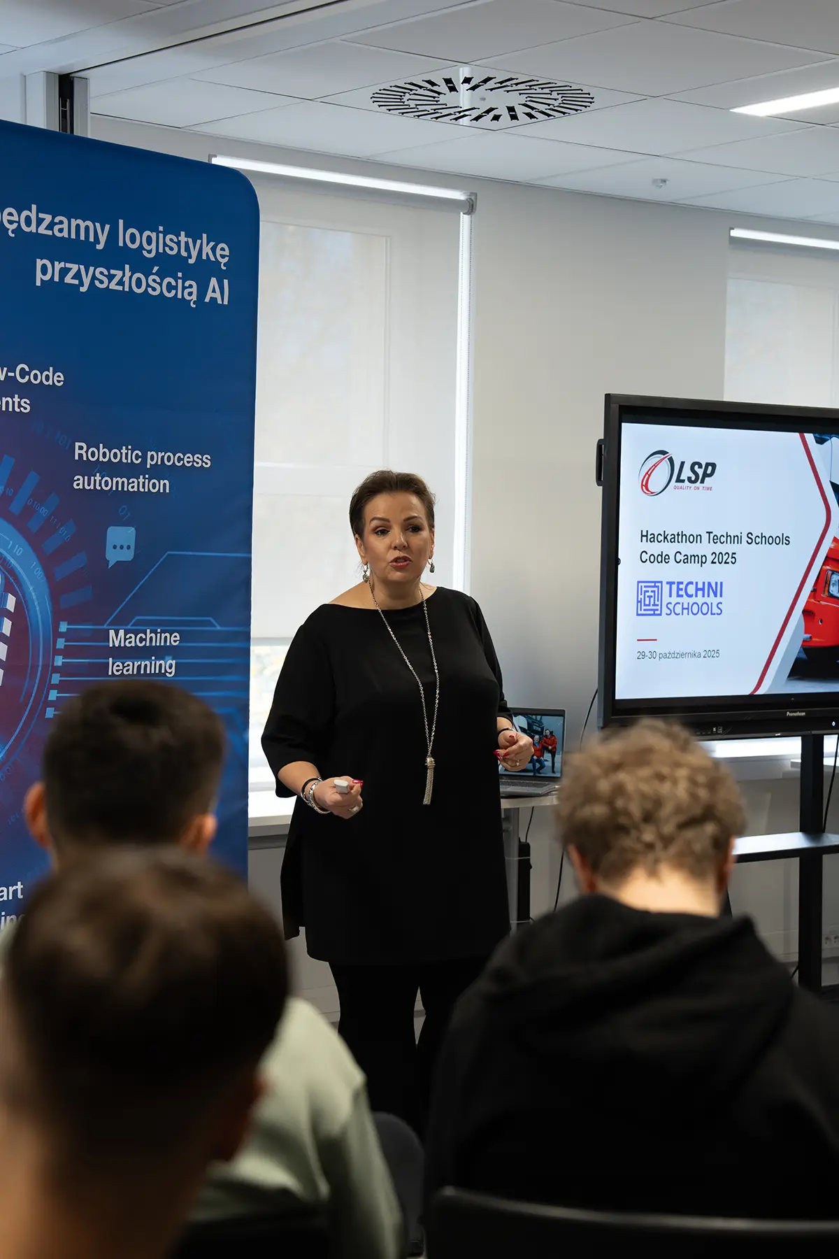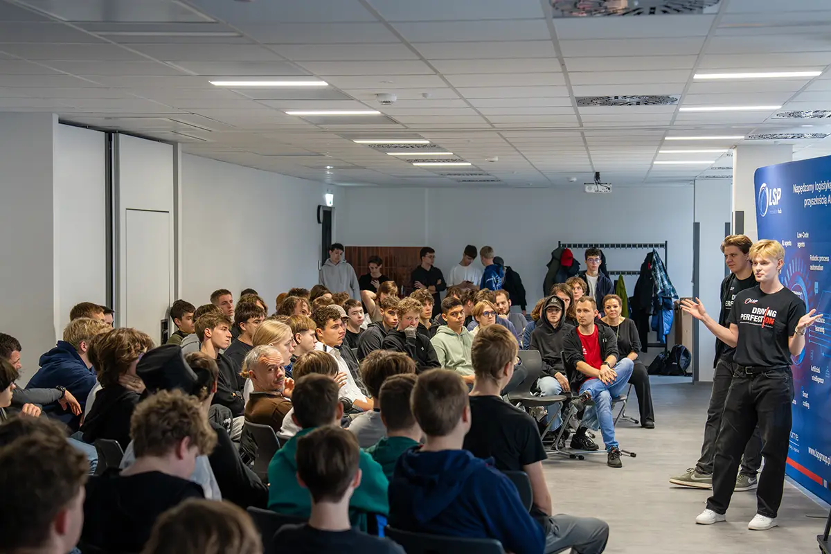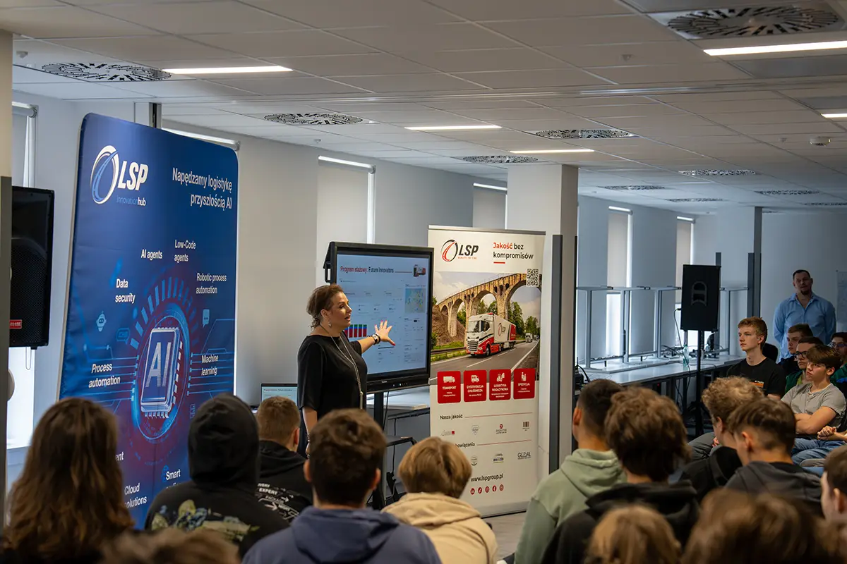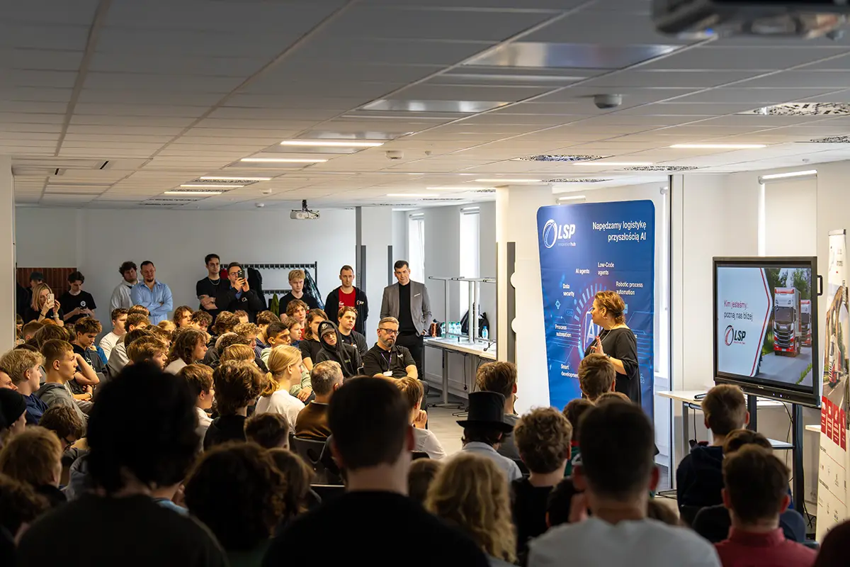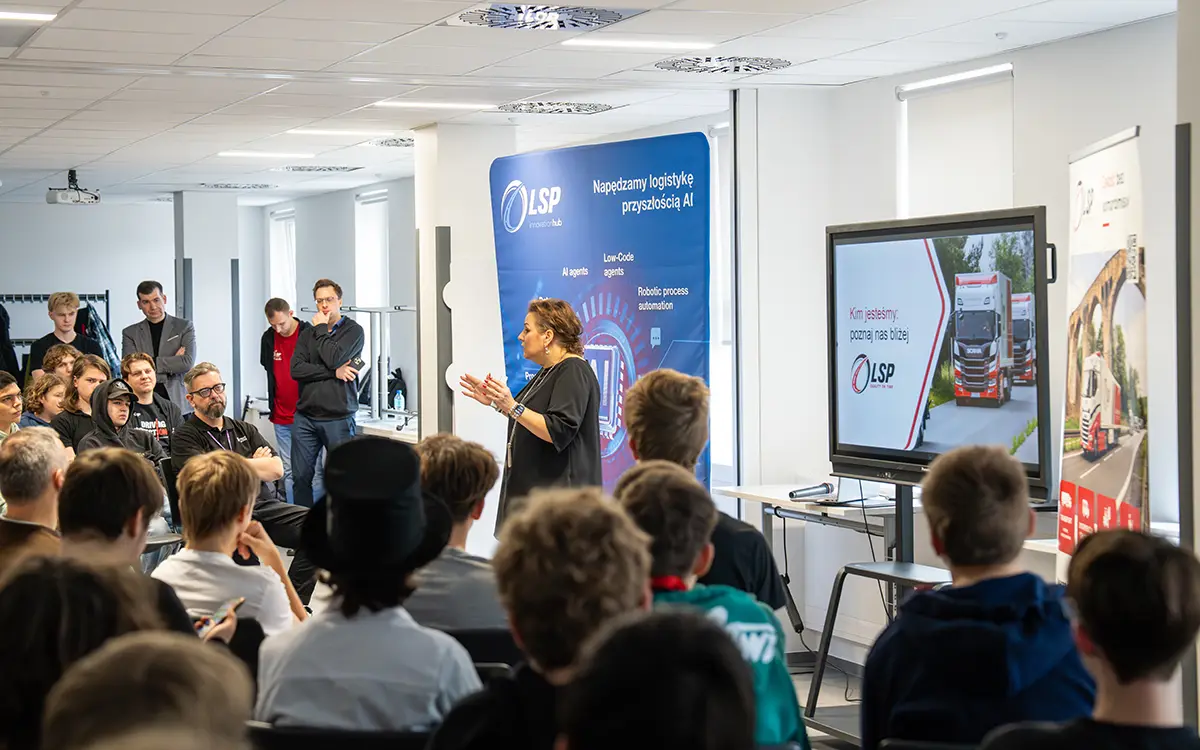 O godz. 12:00 ruszył maraton programowania. LSP Group zaprosiła uczniów do zmierzenia się z realnym case’em: „Predictive Fleet Swap AI” – prototypem inteligentnego planera floty ciężarowej. Młodzież analizowała dane, projektowała architekturę rozwiązań i testowała pierwsze funkcje.