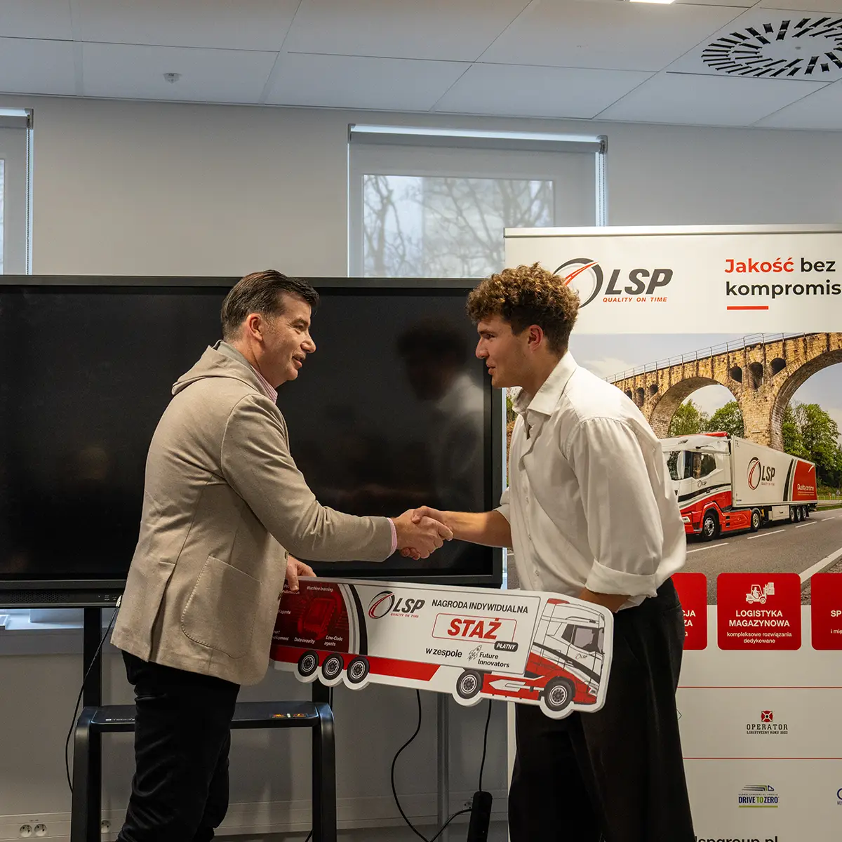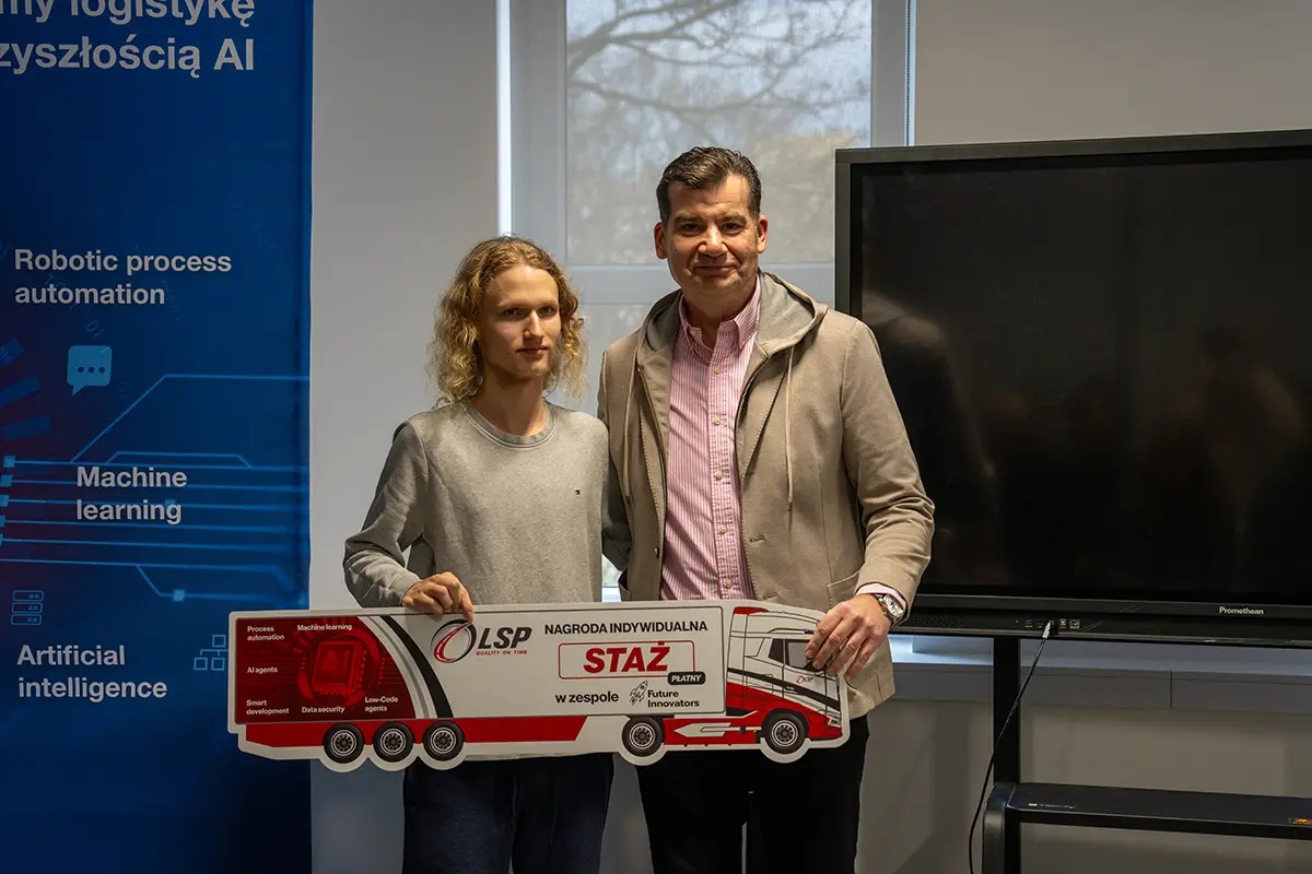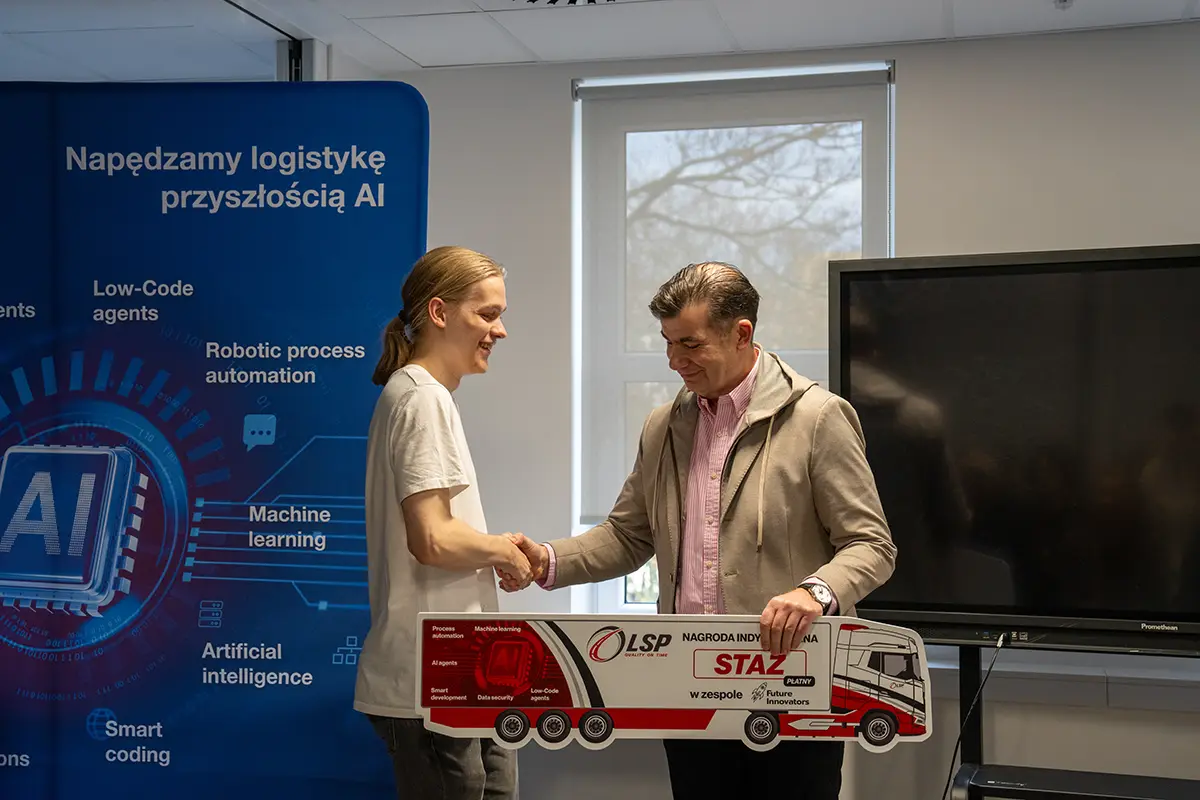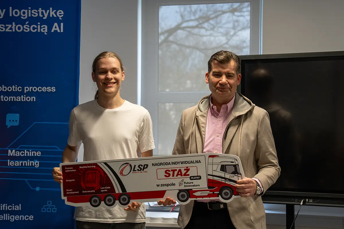Najlepszym zespołom i wyróżnionym uczestnikom wręczyliśmy zaproszenia na staże w LSP Group – to kolejny krok, by zamienić hackathonowe prototypy w rozwiązania o realnym wpływie na branżę transportową.